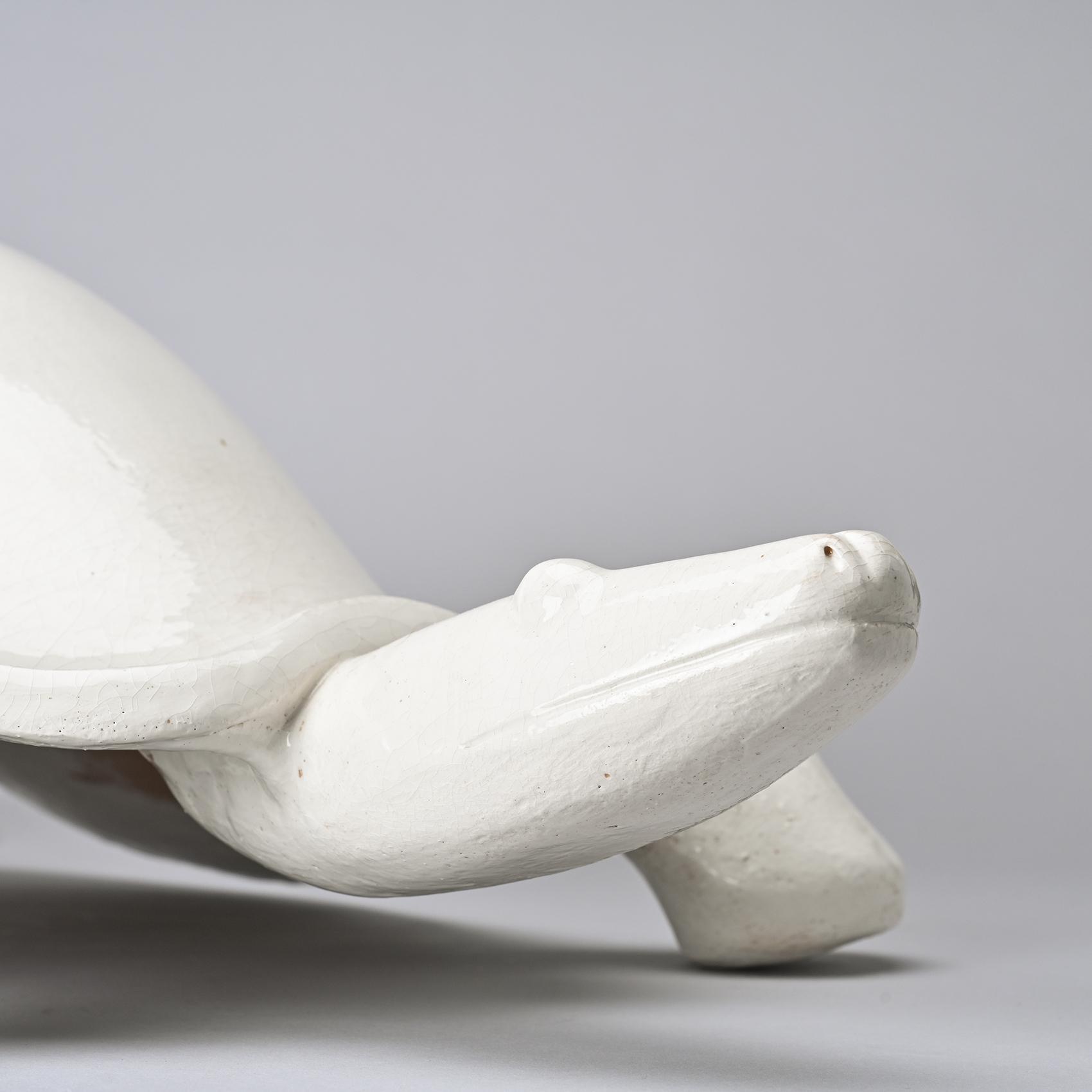 The "Tartaruga" sculpture represents a stylized turtle in white ceramic. Its streamlined form and soft lines embody the minimalist aesthetic characteristic of the artist. A perfect balance between simplicity and elegance.