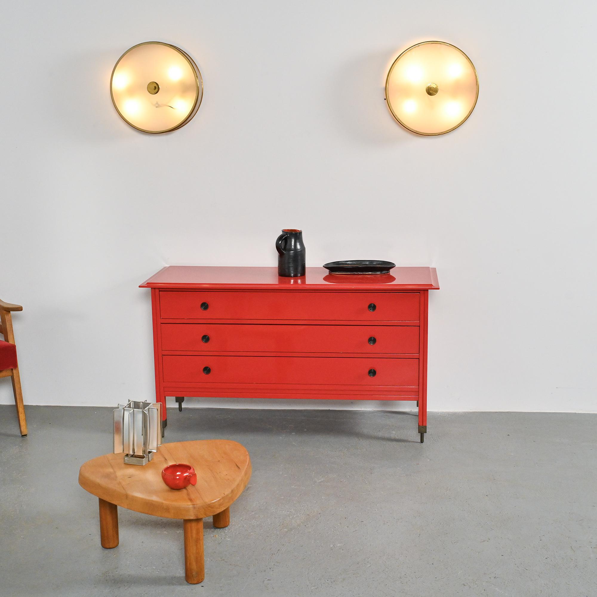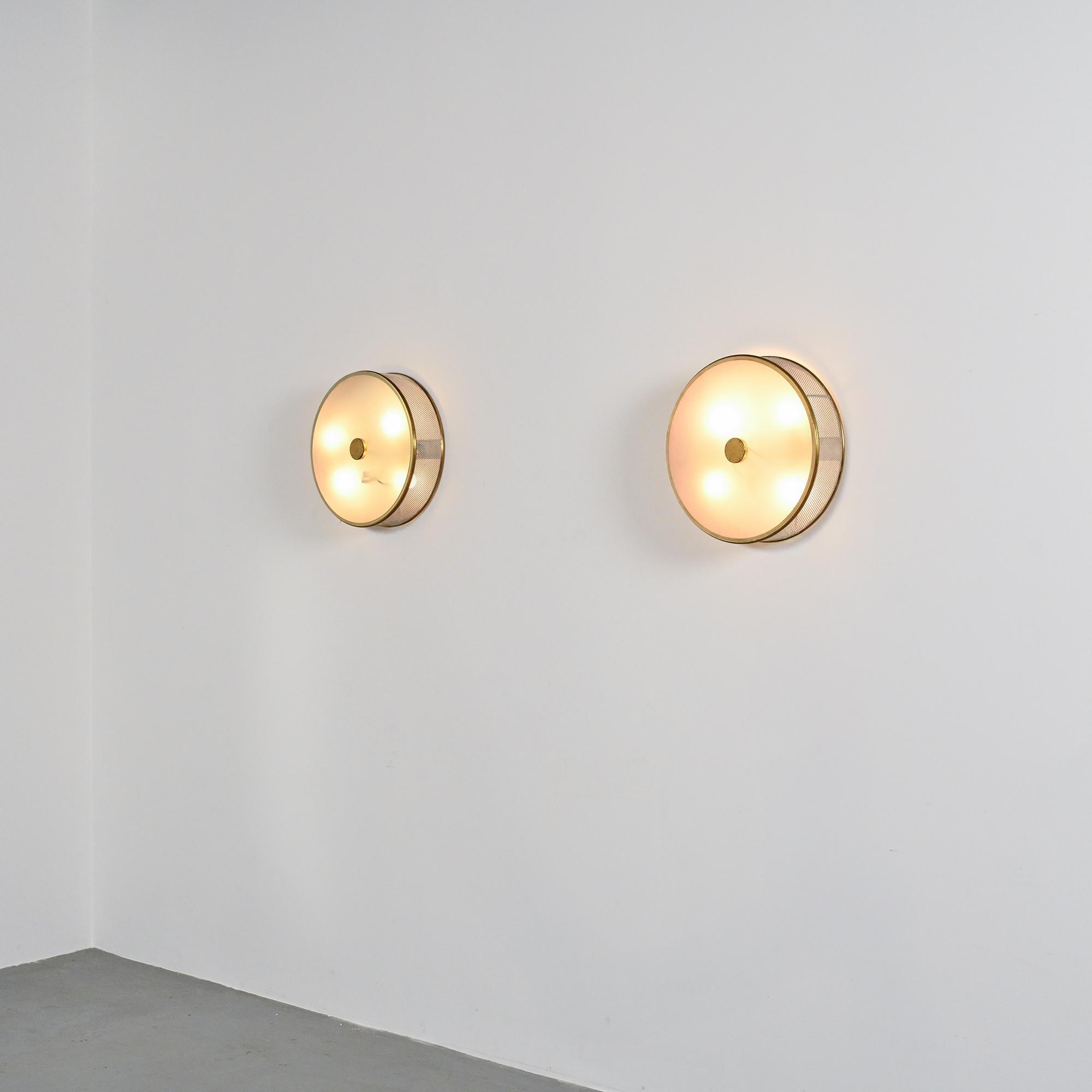 Pair of circular wall lights produced by Maison Lunel around 1955.