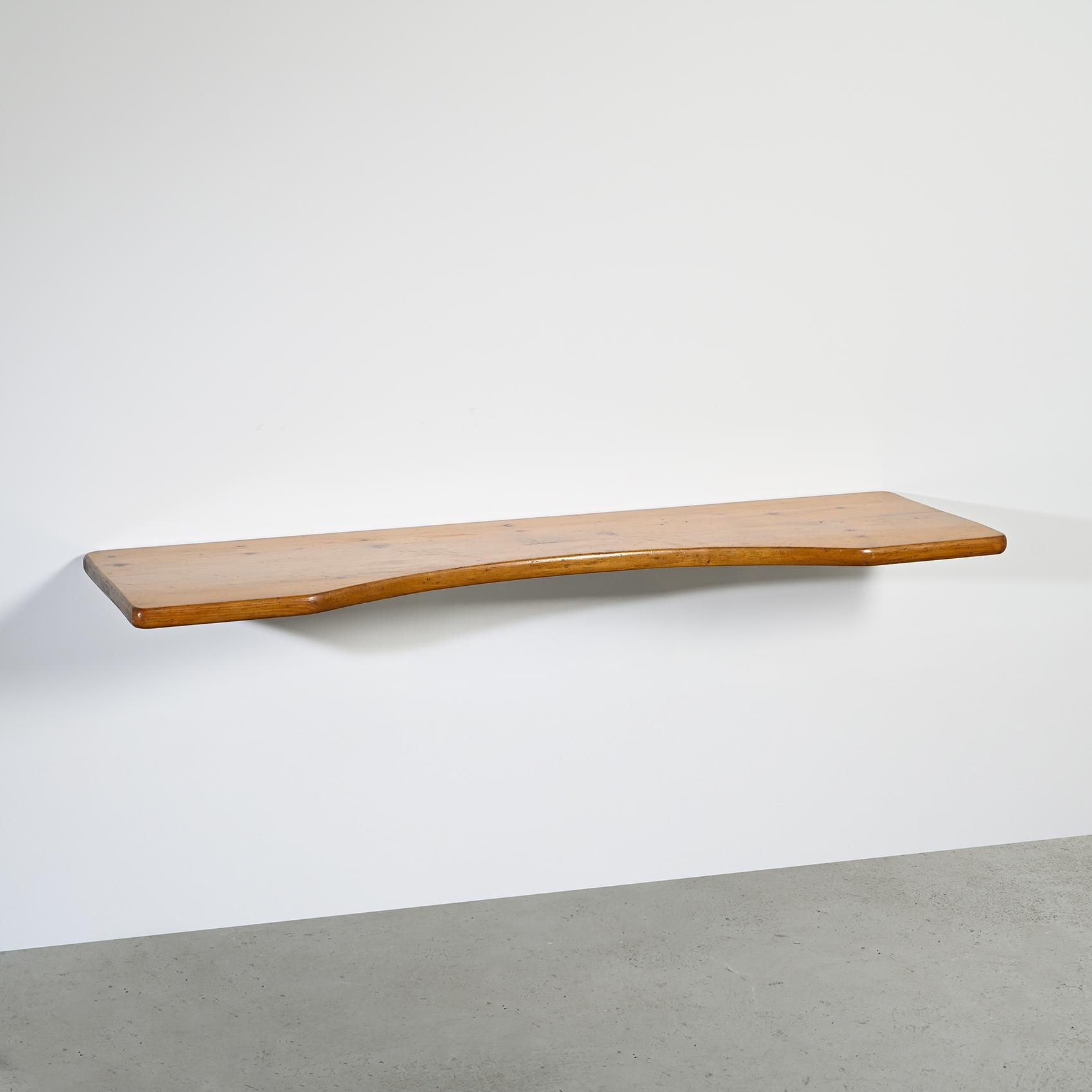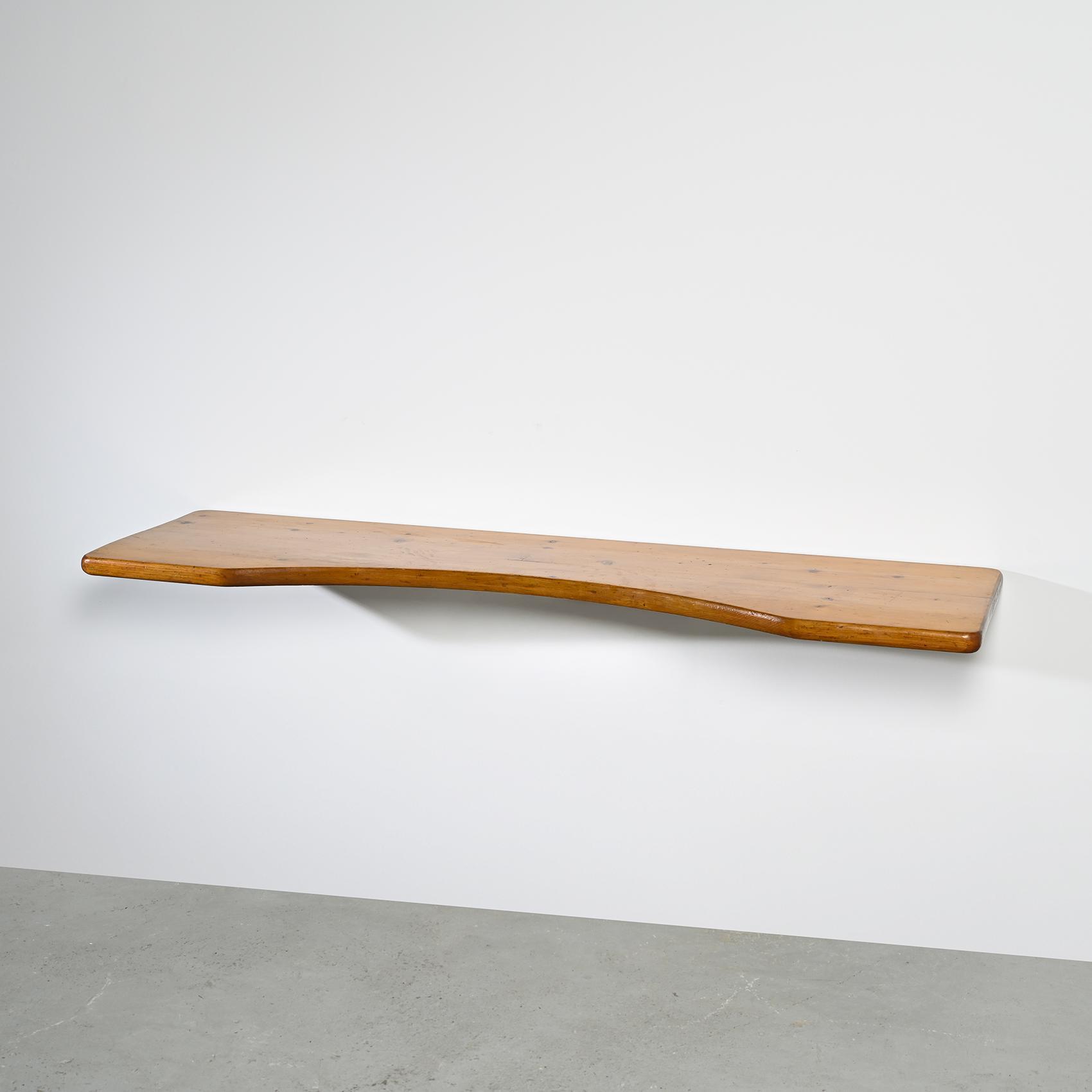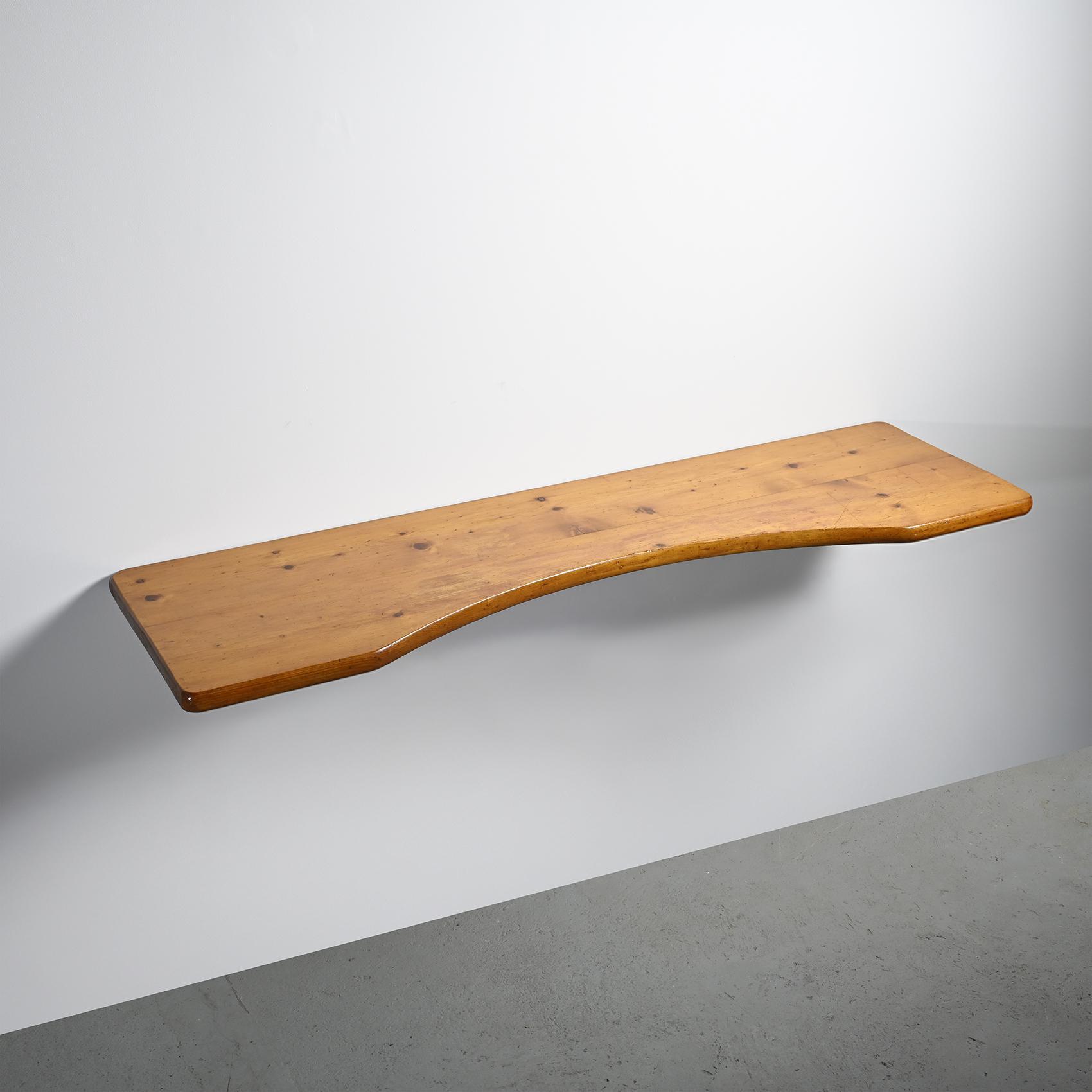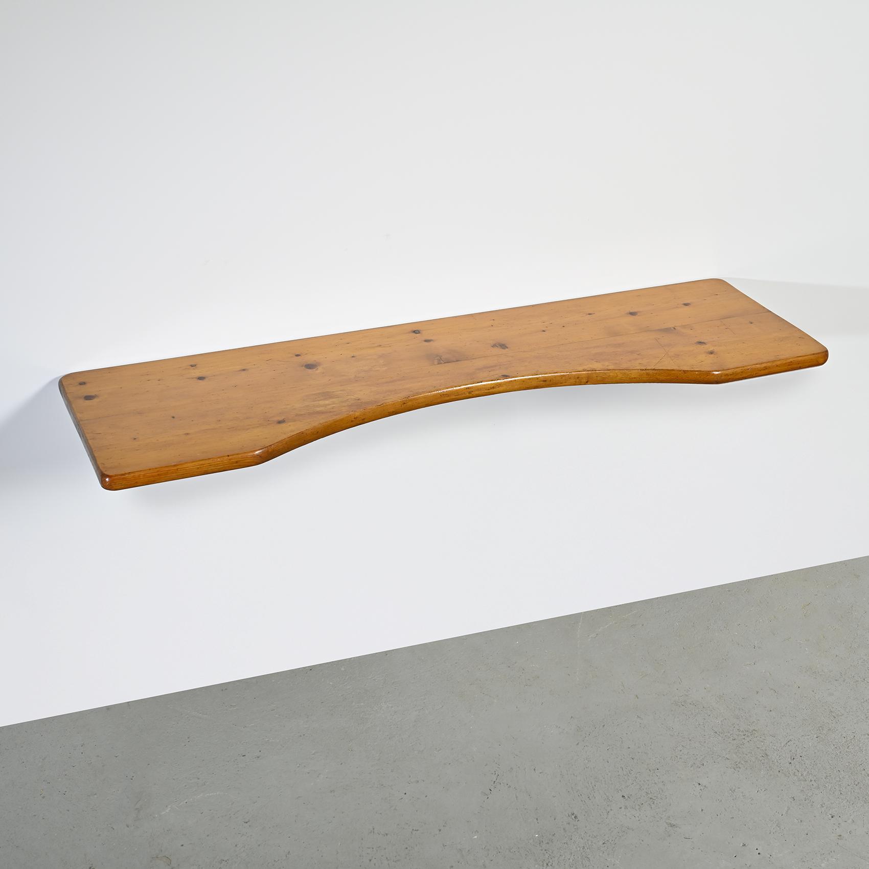 Freeform pine wall-mounted desk designed by Charlotte Perriand, made by the René Martin workshop for the ski resort of Méribel-les-Allues, circa 1960.