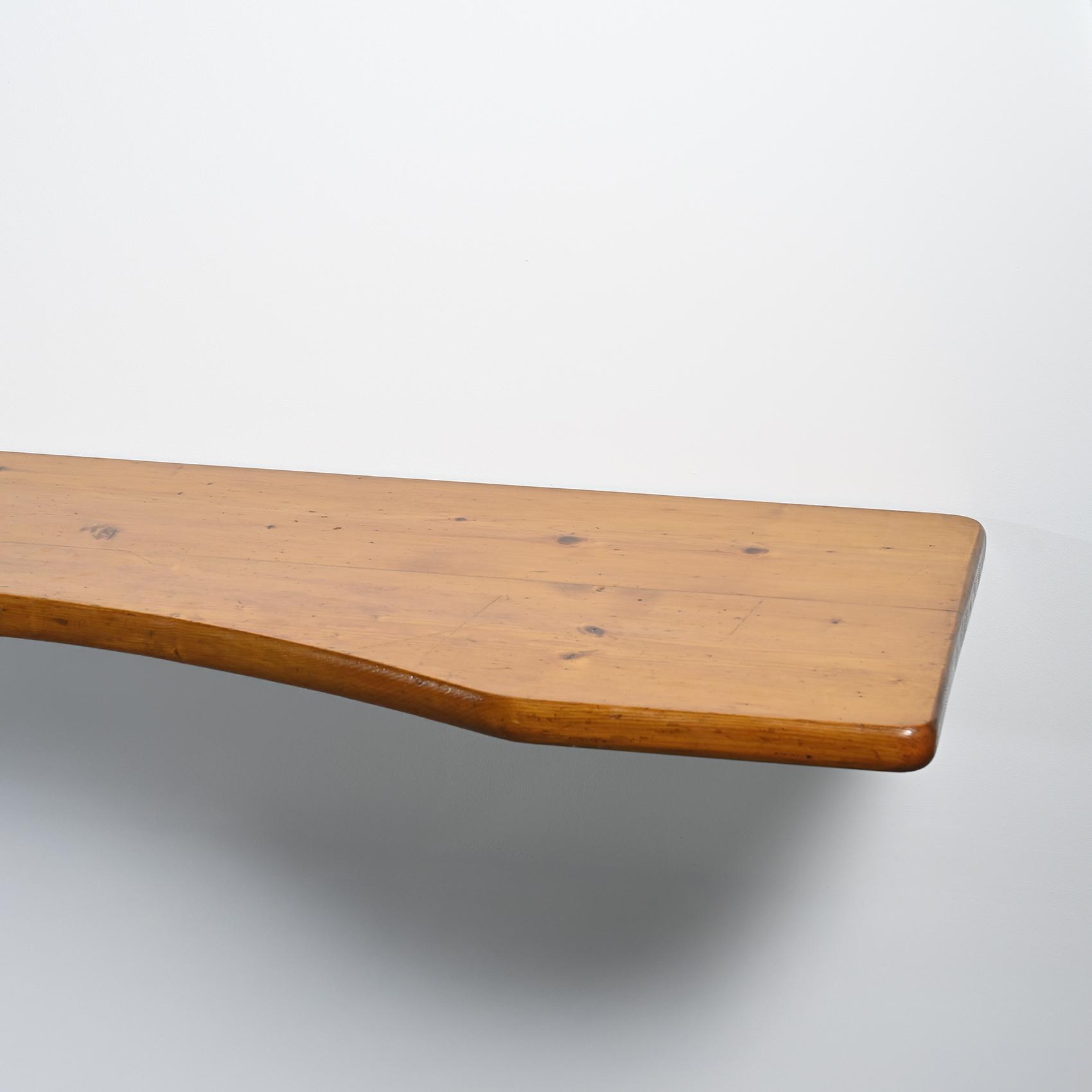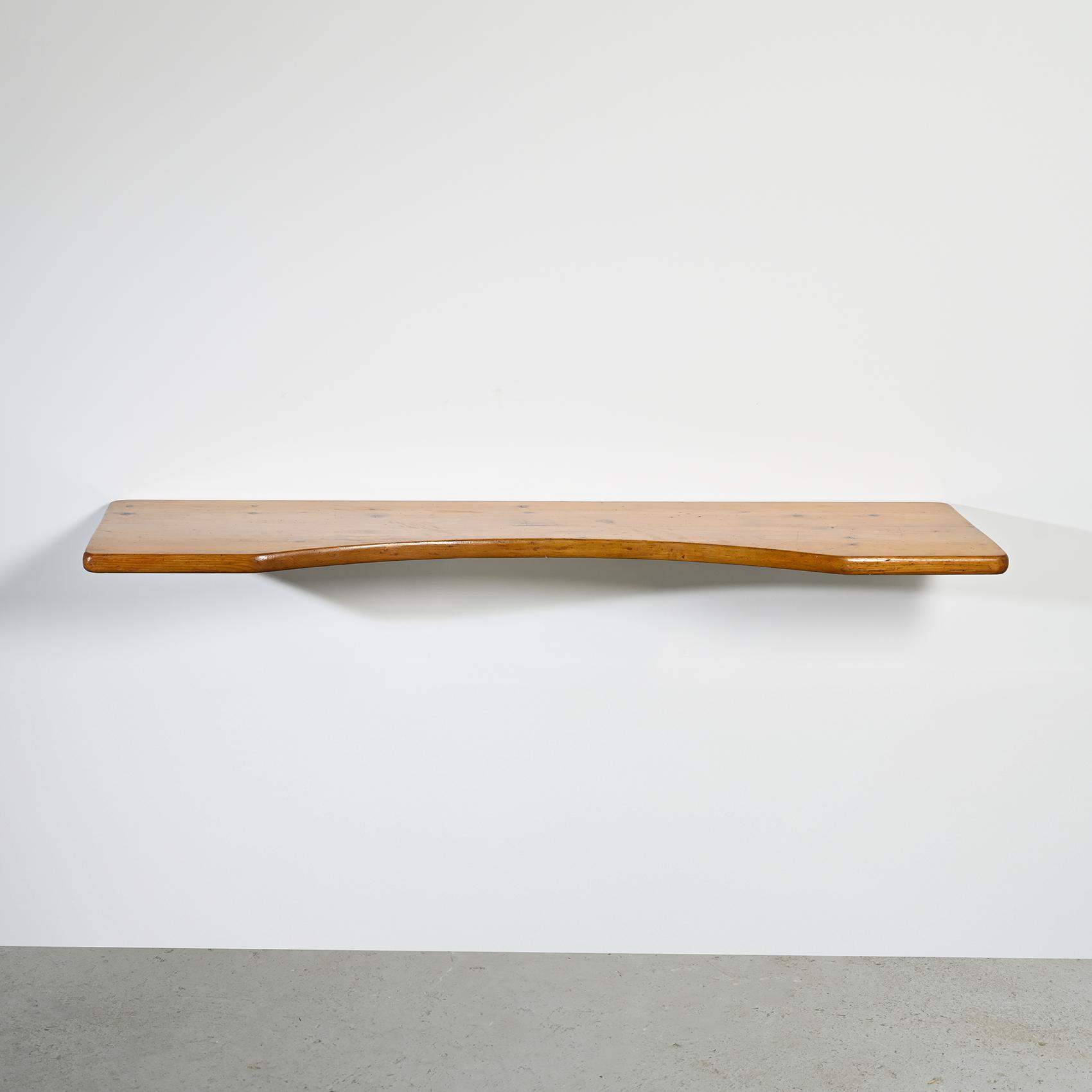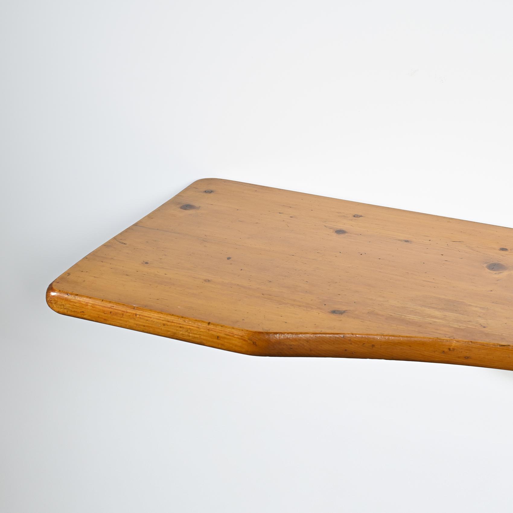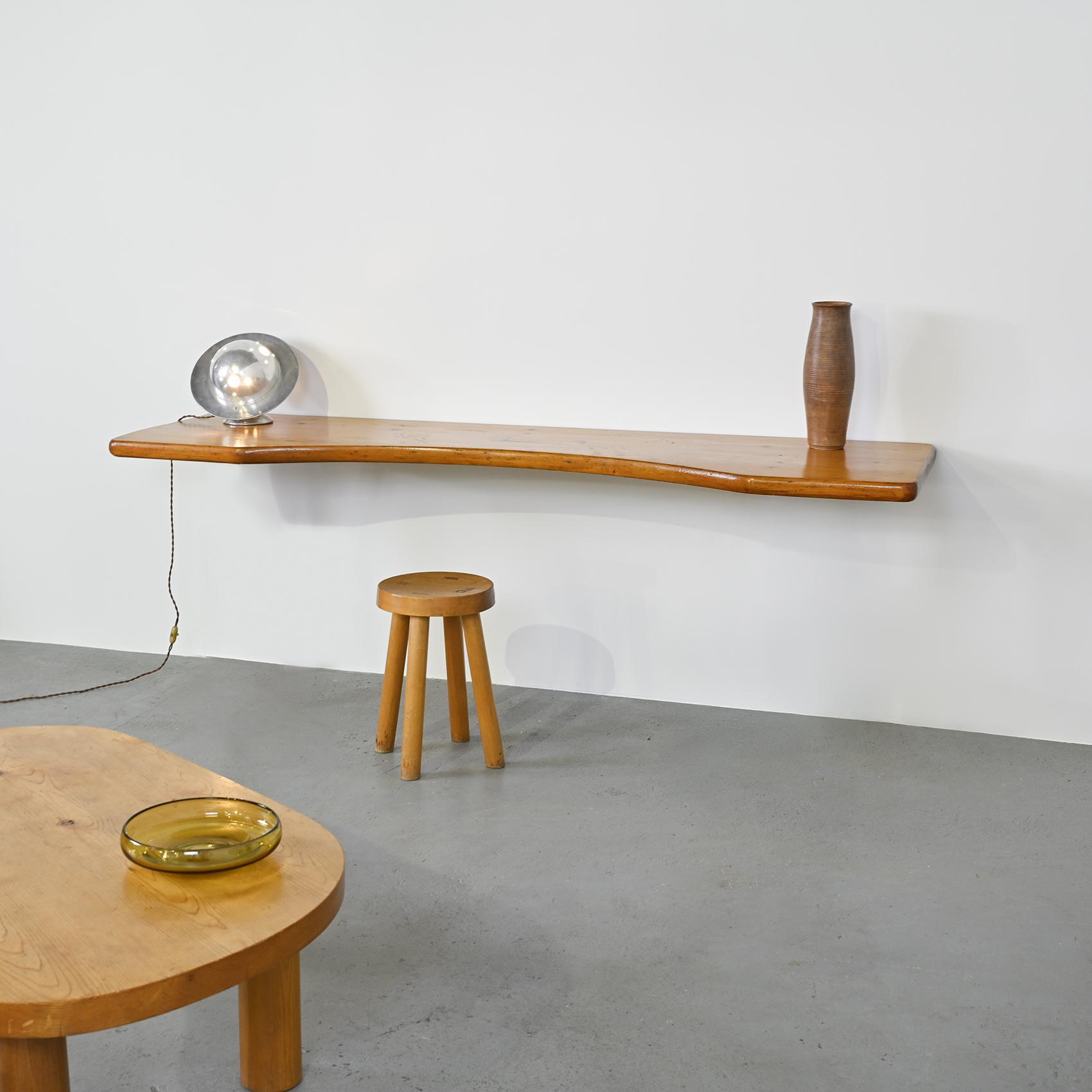 Freeform pine wall-mounted desk designed by Charlotte Perriand, made by the René Martin workshop for the ski resort of Méribel-les-Allues, circa 1960.