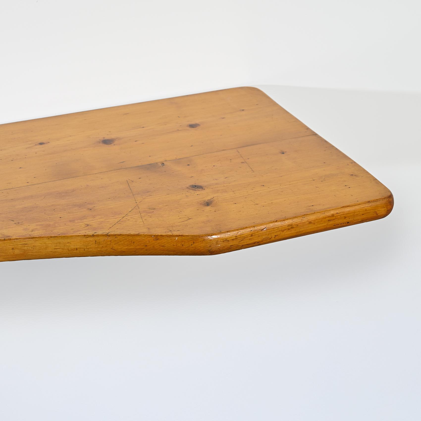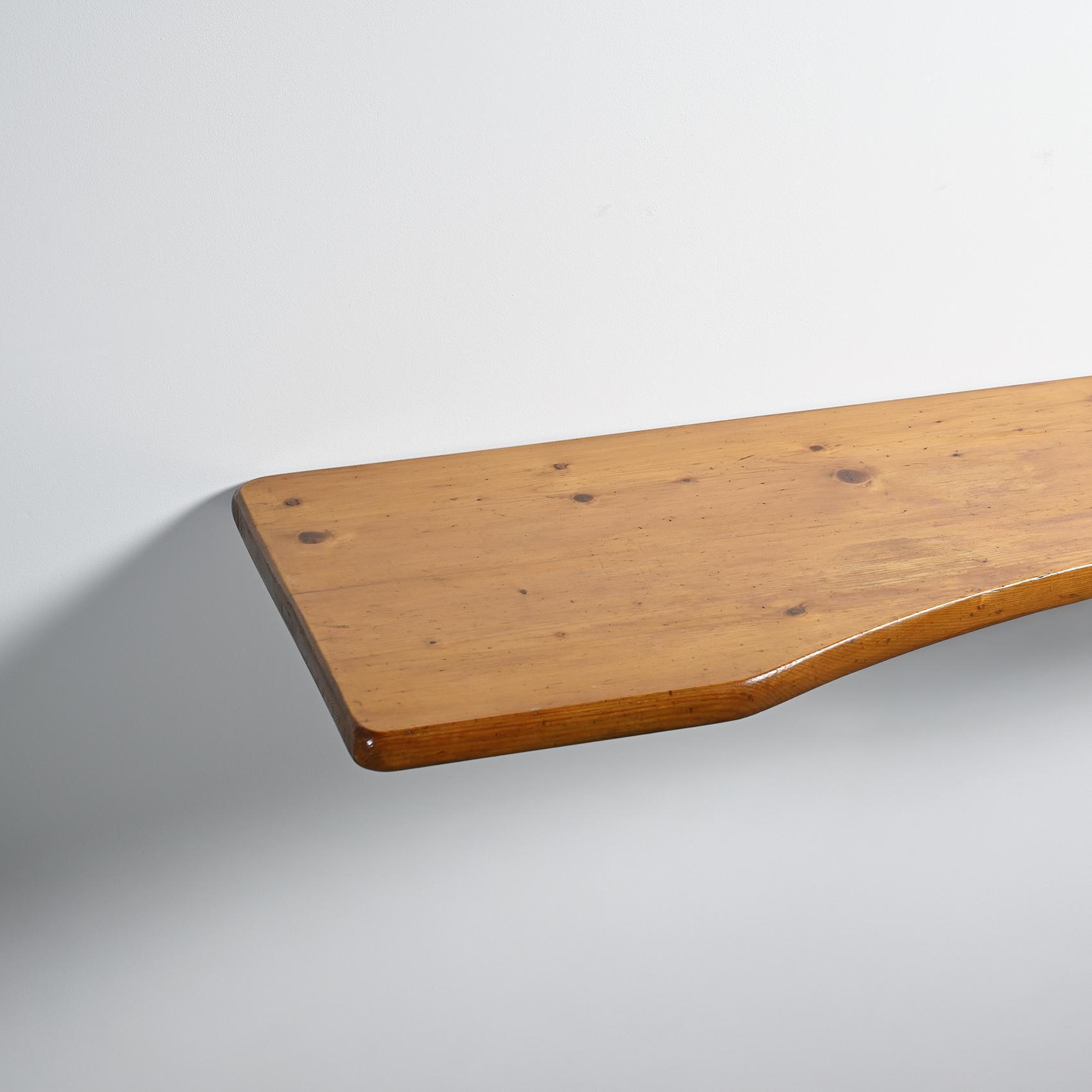 Designed to be fixed to the wall, this suspended desk features a solid pine top with soft, organic lines - a hallmark of Perriand's modernist vocabulary. Minimal, functional, and warm, it reflects the care given to alpine interiors during the 1960s.