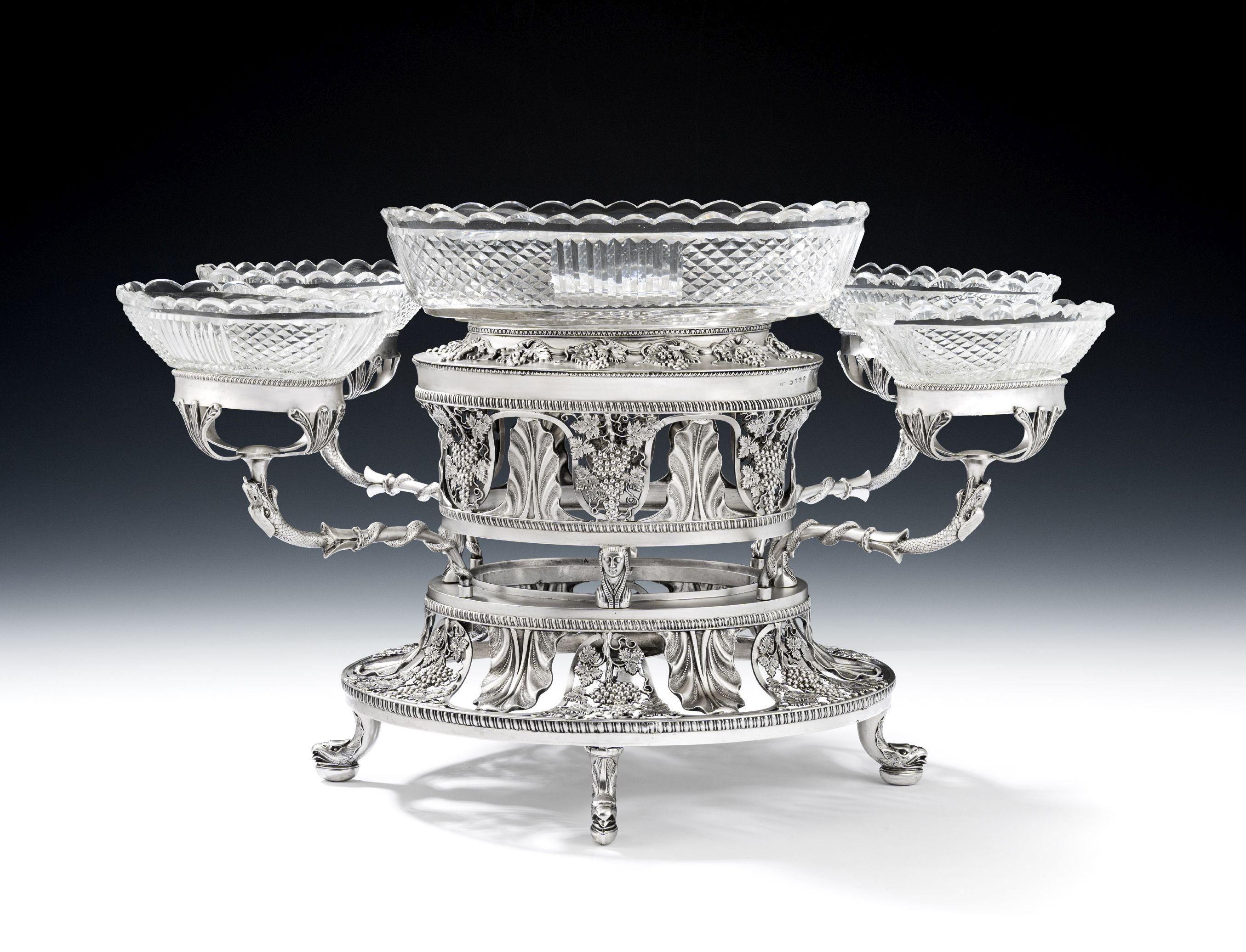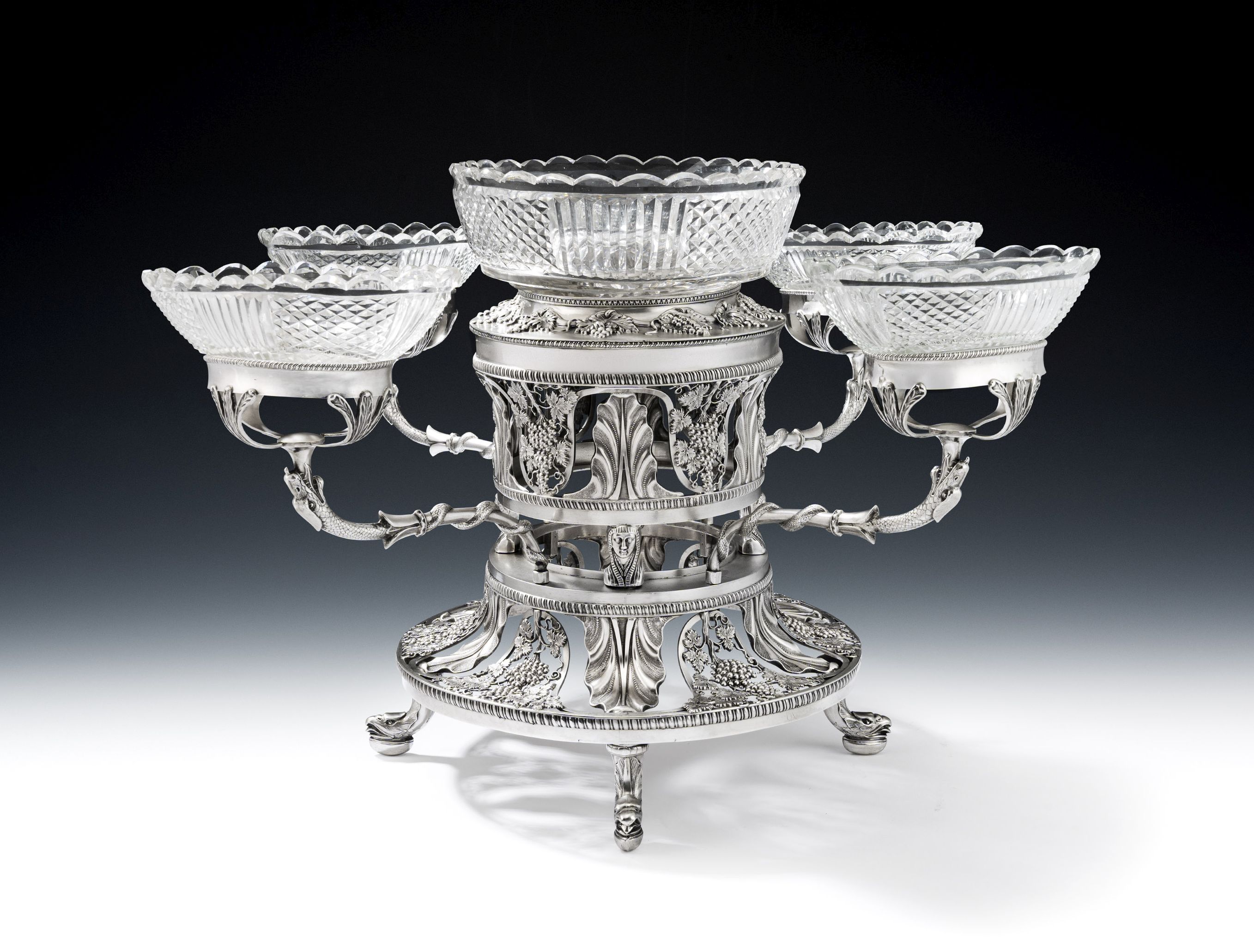 - A most unusual George III SILVER AND GLASS TABLE CENTREPIECE MADE IN lONDON IN 1805 BY tHOMAS hAYTER.