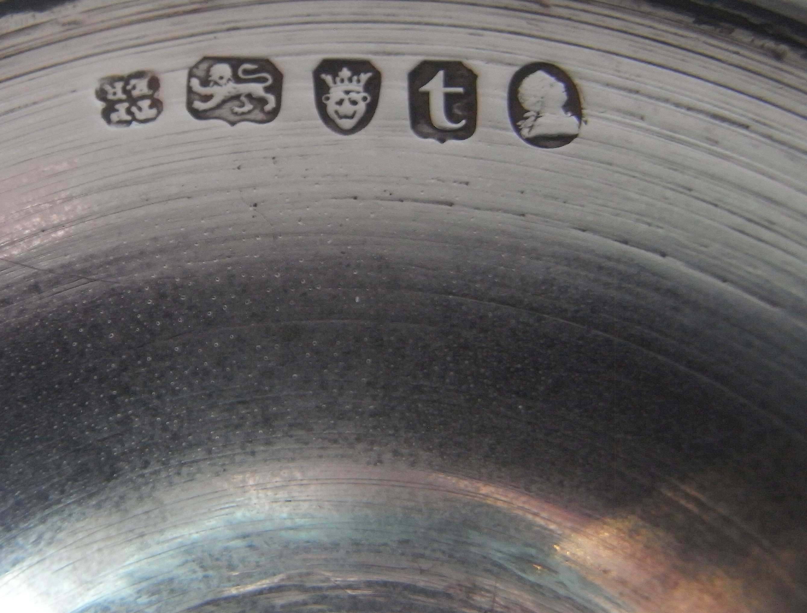 In England, at this date, Coconuts were extremely expensive and were only enjoyed by the aristocracy and the wealthiest in society. When eaten the nuts were often carved and mounted in silver, however very few examples survive because of their fragile nature and many were broken in the production process. This Coconut stands on a circular foot, made in two sections, and decorated with a reeded edge, as well as a band of engraved foliate motifs on a scratch engraved ground. he Nut is finely carved with a band of shell motifs in circular frames, above a very unusual band of stars and a crescent moon, also in roundels. The sides rise to a silver rim decorated with reeding and prick dot bands. It is unusual to find a coconut cup with cover and this piece has a domed cover which terminates an a Classical urn finial and displays a pretty engraved border of trailing foliate designs and flower heads. This piece is in very good condition and is fully marked in no fewer than three different locations. It has been argued that Thomas Phipps and Edward Robinson made the best silver mounted Coconut Cups during this period and this is a prime example.