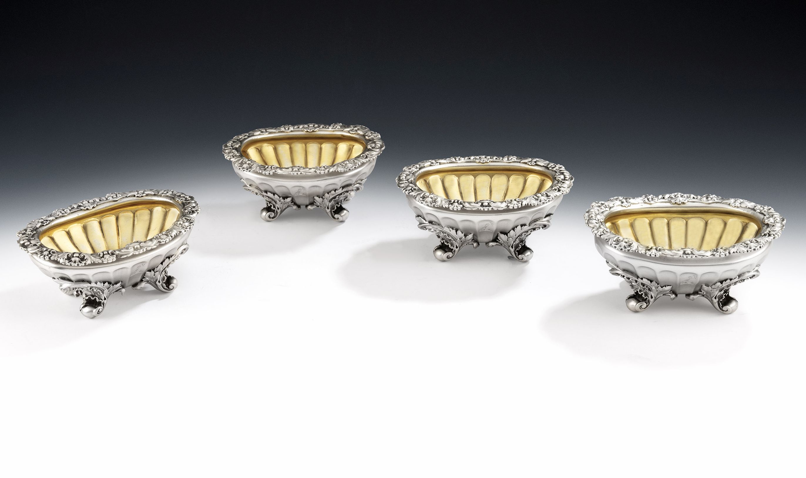 PAUL STORR. An exceptional set of four George III Salt Cellars made in London in 1818 by Paul Storr.