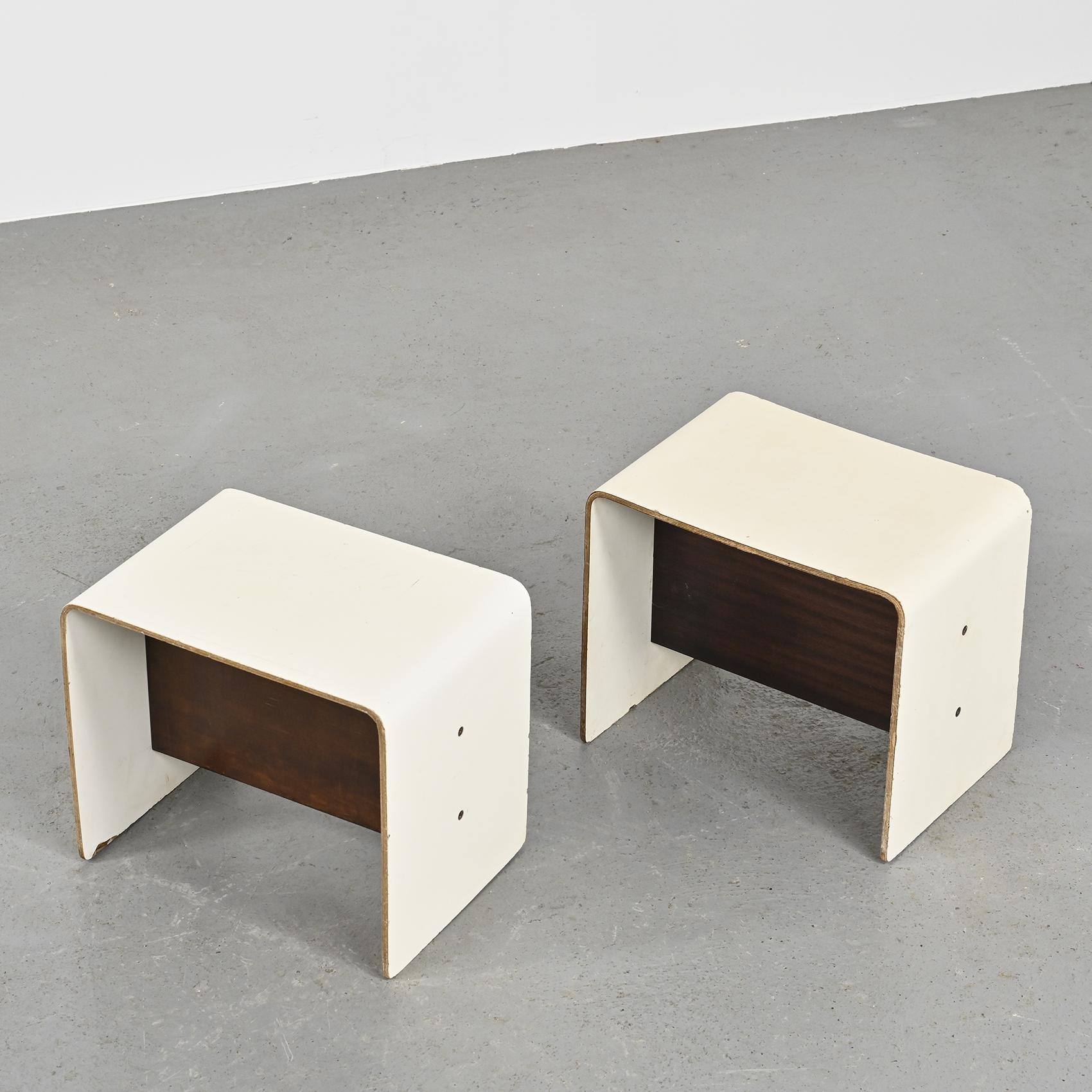 Ils ont été fabriqués en contreplaqué cintré en forme de U, recouvert d'un stratifié blanc, et disposent d'une entretoise plaquée en bois.