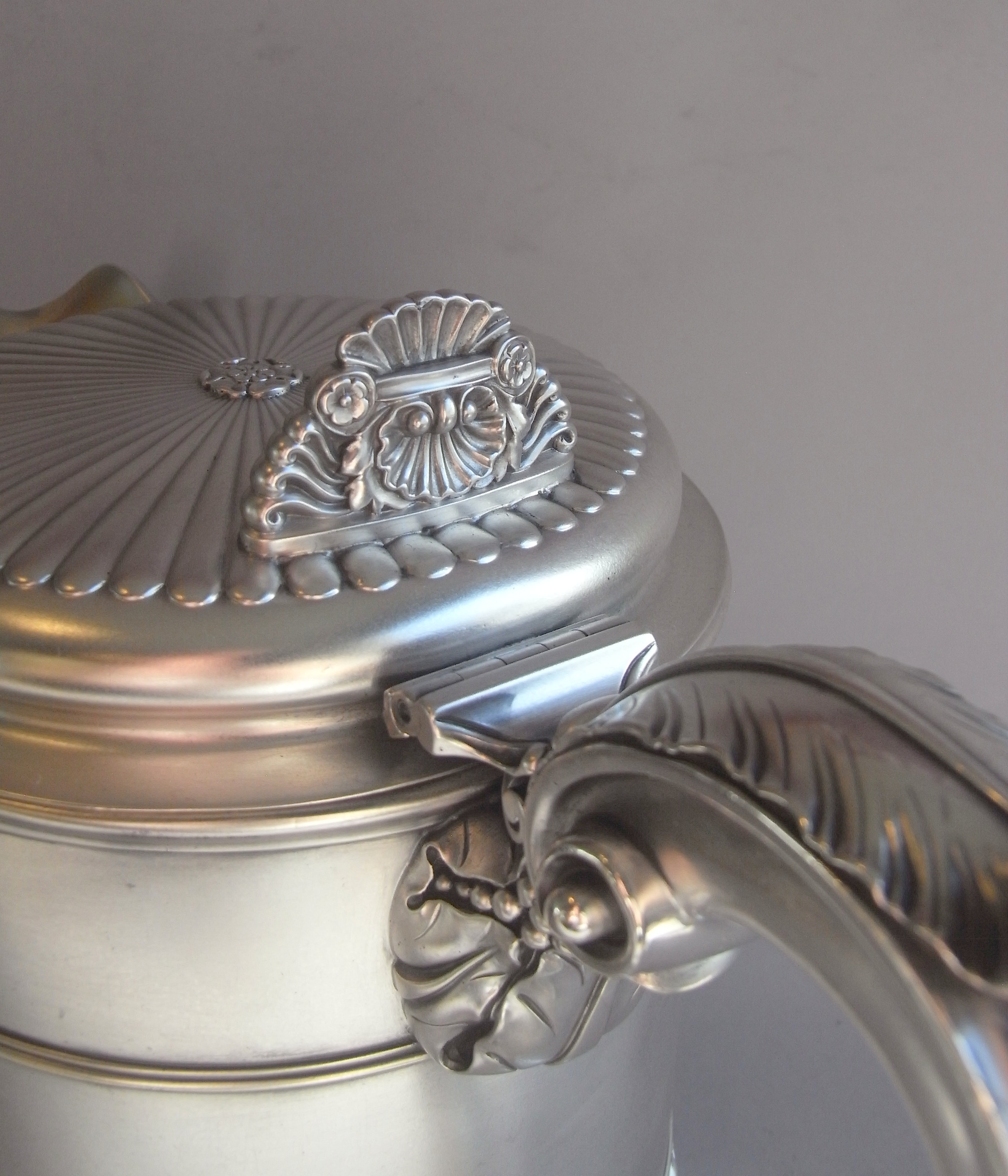 The Jug is of a large size and substantial weight. It is fully marked on the side of the main body and on the rim of the cover. It is in excellent, crisp, condition and displays a gilded interior. These rare Jugs would have been used to fill up the very rare Beer Cups, also made by Storr, which hardly ever appear on the market. As you will appreciate, wine and beer related silver was not made in great quantity by Paul Storr.